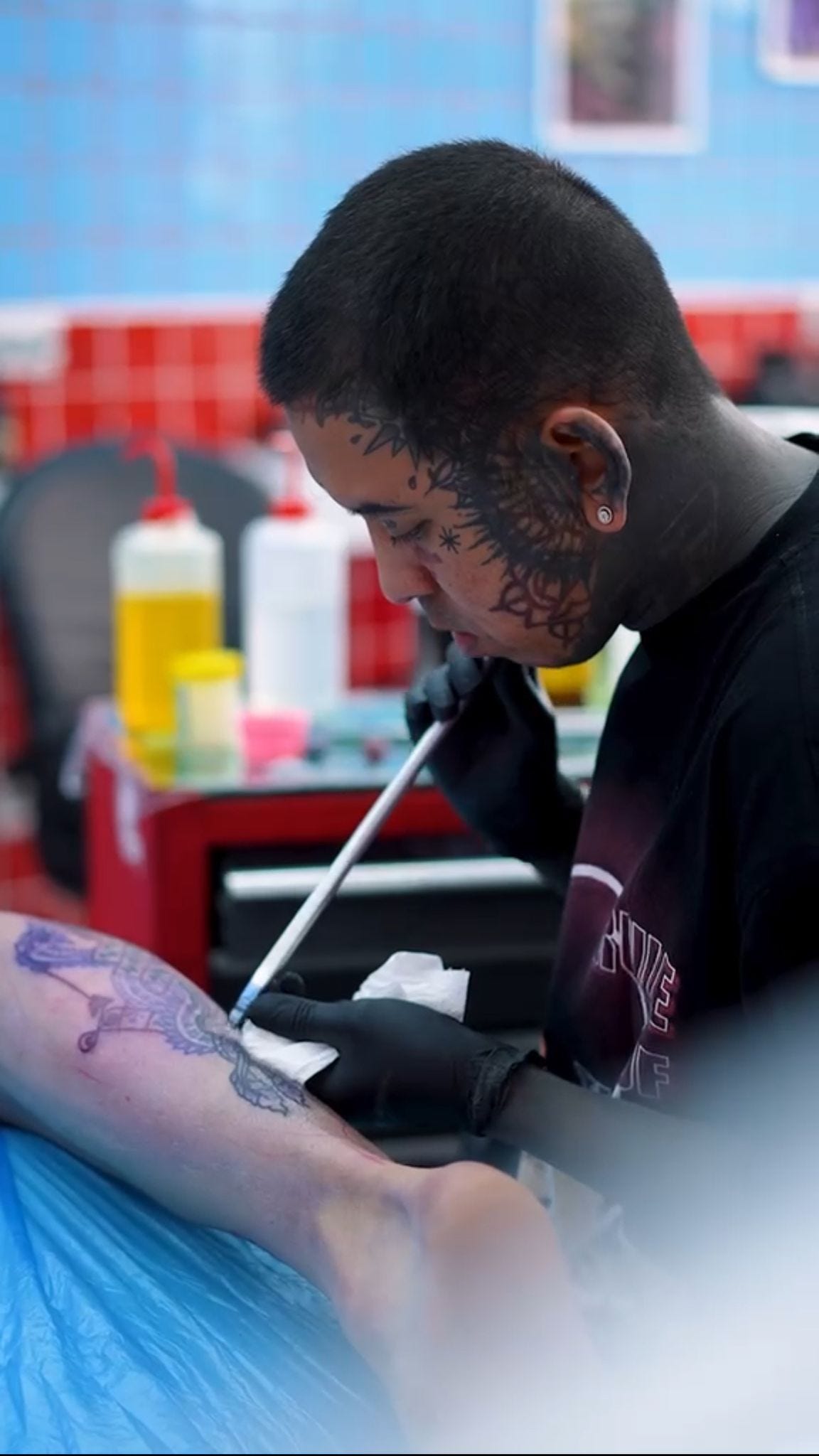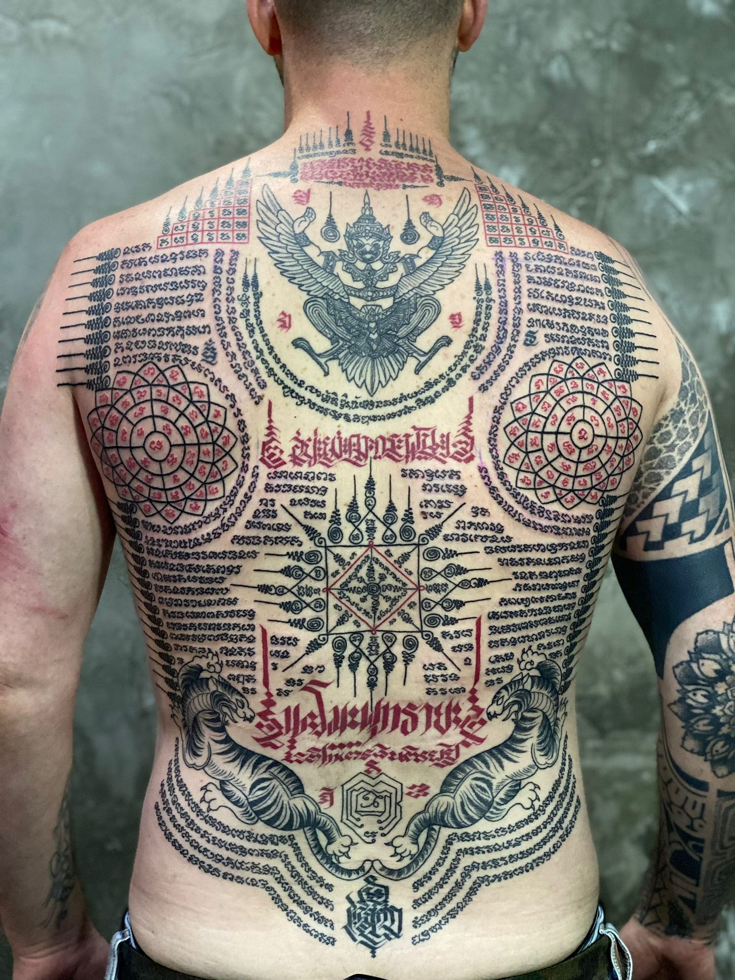 Hop over to Phuket, Thailand, and you’ll find Prachitchai Daenglaoun—the self-branded “Bamboo Man”—whose studio is a temple of bamboo artistry. Decked out in his own ink, Bamboo Man works with a stainless steel bamboo stick for style meets hygiene. “I’m the best,” he jokes to me while alongside his business partner Jack Tew. Though many so-called “bamboo artists” in Thailand use machines, Bamboo Man sticks to tradition and wild imagination. “I like drawing widescreen Japanese comic characters,” he boasts. His growing fanbase is living proof that ink is universal (Bamboo Man ).