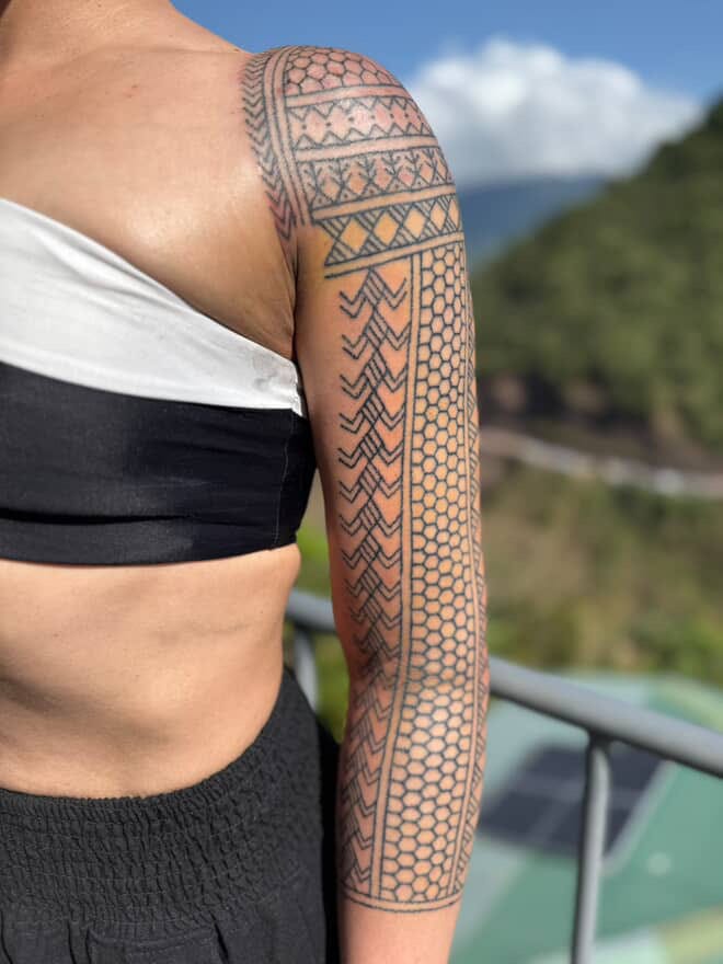 Grace, at 29, spent years at Whang-Od’s side learning this 1,000-year-old craft, making sure the family’s artistic bloodline doesn’t fade. Local legend has it: if an outsider tries to learn, the tattoos go rogue—think infected, not edgy. Now Grace, along with Ilyang Wigan (another of Apo Whang-Od’s grandnieces), is keeping the tradition alive for a new tribe of tattoo lovers. While ancient warriors flaunted ink for battle or spirits, today’s tattoos pack personal stories and can get pretty intricate—elaborate geometric lines crisscrossing arms, legs, chests, and more, sometimes taking multiple sessions and days. The recipe for ink? Charcoal and water. The design, stenciled onto skin. The method, tap… tap… tap. Grace loves “fern” designs for vibes of prosperity and fertility, but also sketches mountains to channel the spirit of nature. “Tattooing is part of a bigger picture for our culture in a global way of life,” she says (palicasgrace).